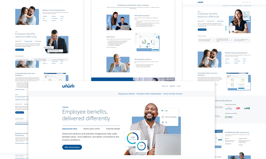 At Unum, we faced a challenge common to many insurance companies—our website was plain and becoming dull. We frequently heard feedback that all our web pages looked the same. At first glance, this might not seem like a major issue for an insurance company, but from both a business and user experience perspective, it told a different story. The lack of visual distinction led to low engagement, high bounce rates, and navigation difficulties. Given the size of our website, it was essential to differentiate our pages to enhance usability and engagement.